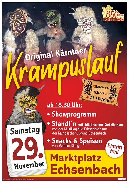 Herzliche Einladung zum Krampuslauf am Marktplatz Echsenbach am Samstag, 29. November 2025.